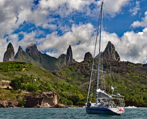 We circumnavigated Nuku-Hiva, stopped briefly at Ua Po, then sailed the 800
