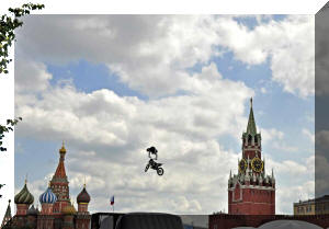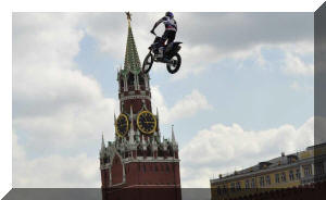 There was a carnival going on the day we were in Moscow. It prevented us getting into St Basil's cathedral (in the background). No great loss, because the inside is quite simple relative to the Cchurch of the Saviour in St Petersburg. |