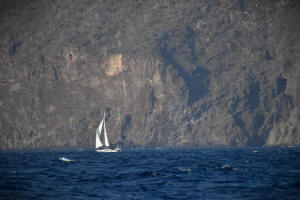 Nuku-Hiva, in time for the Matavaa festival. The Midgeleys, on their Ovni 39, Zig Zag sailed with us. Seen here passing Hiva Oa |