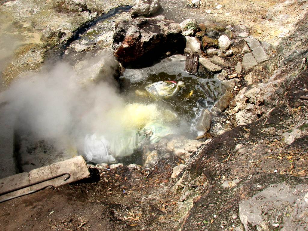 This one is right beside the sidewalk. The notice prohibits using it, because it is reserved to feed a swimming pool. However there are no warnings or protection against a pedestrian stepping in the vigorously boiling water. |