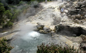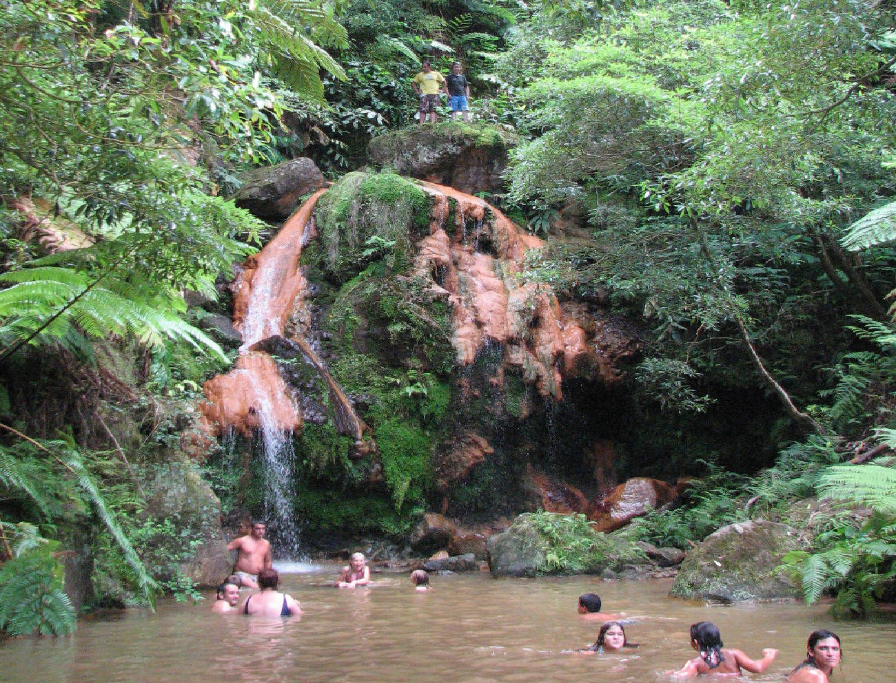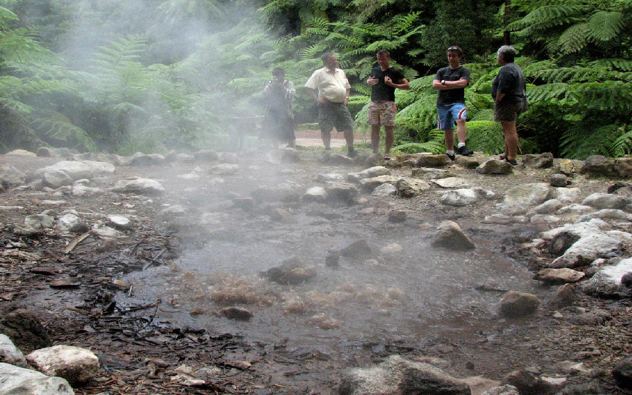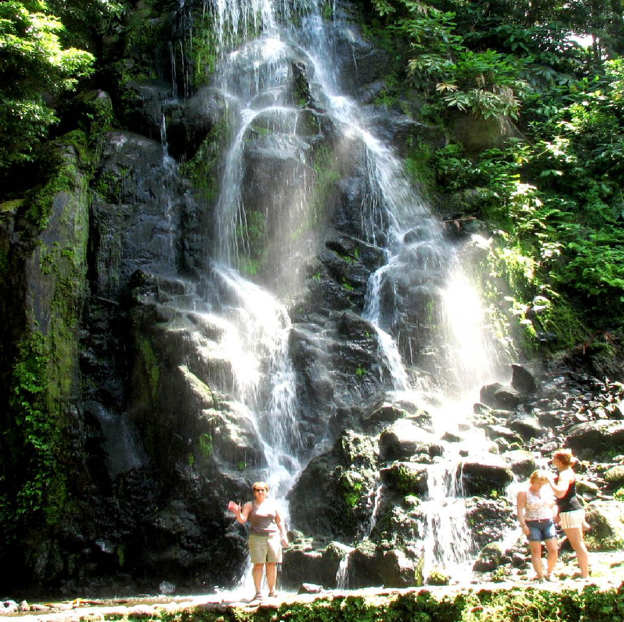 are plenty waterfalls on Sao Miguel, mostly crystal clear like this one.An American friend, Barb Brown, is standing in front of the fall. She joined us in Sao Miguel for the voyage to Ireland. |