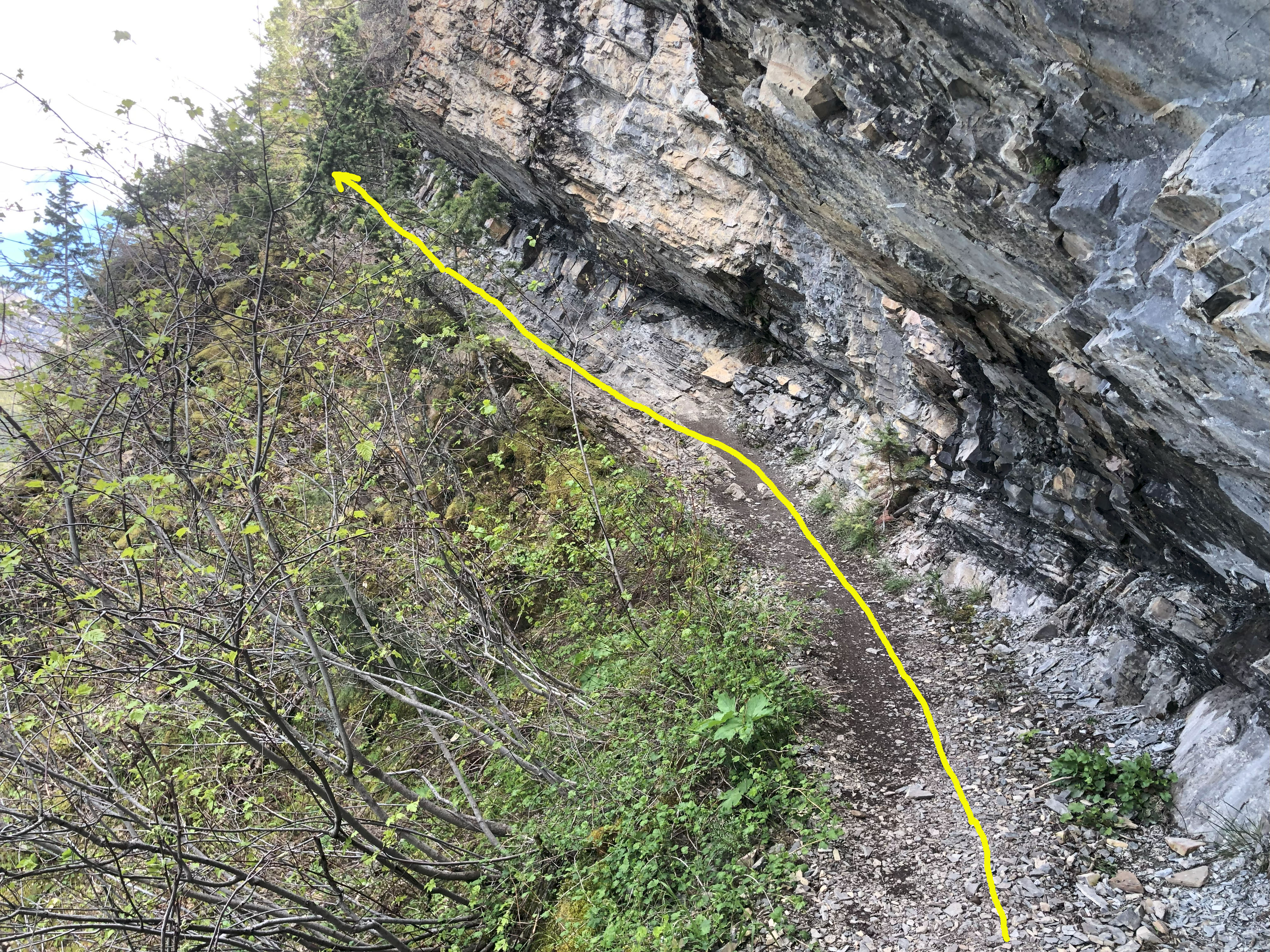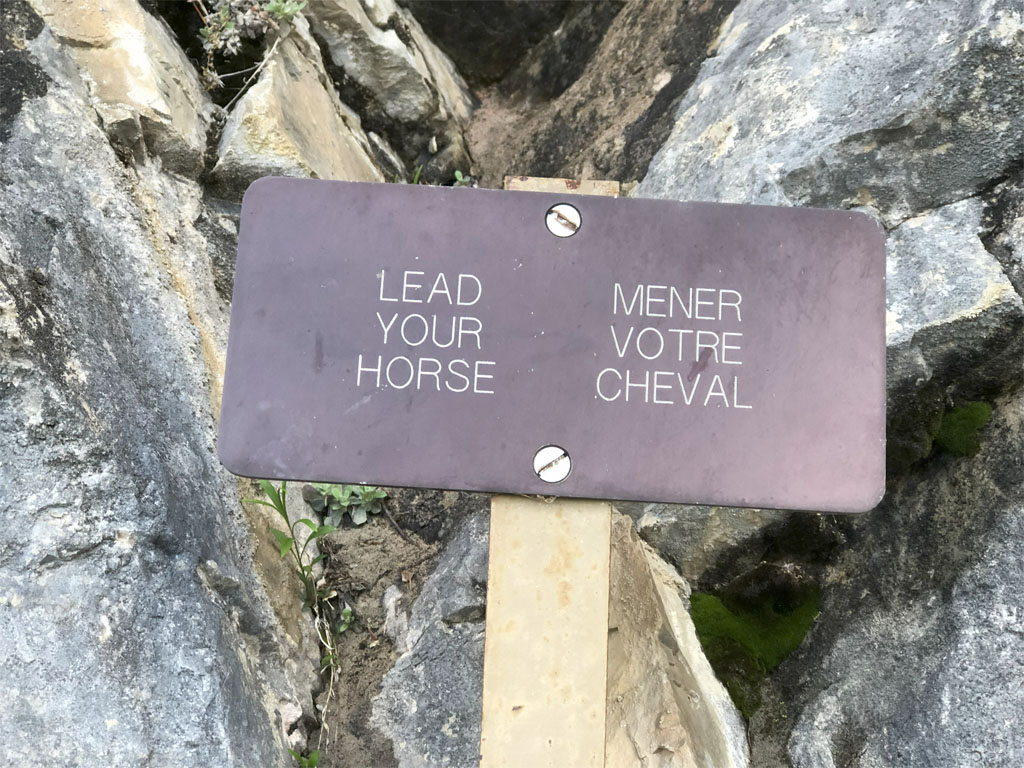 this sign on the trail down Waterton Lake.I had to duck under the rock on the trail. Now idea how a horse could do it. |