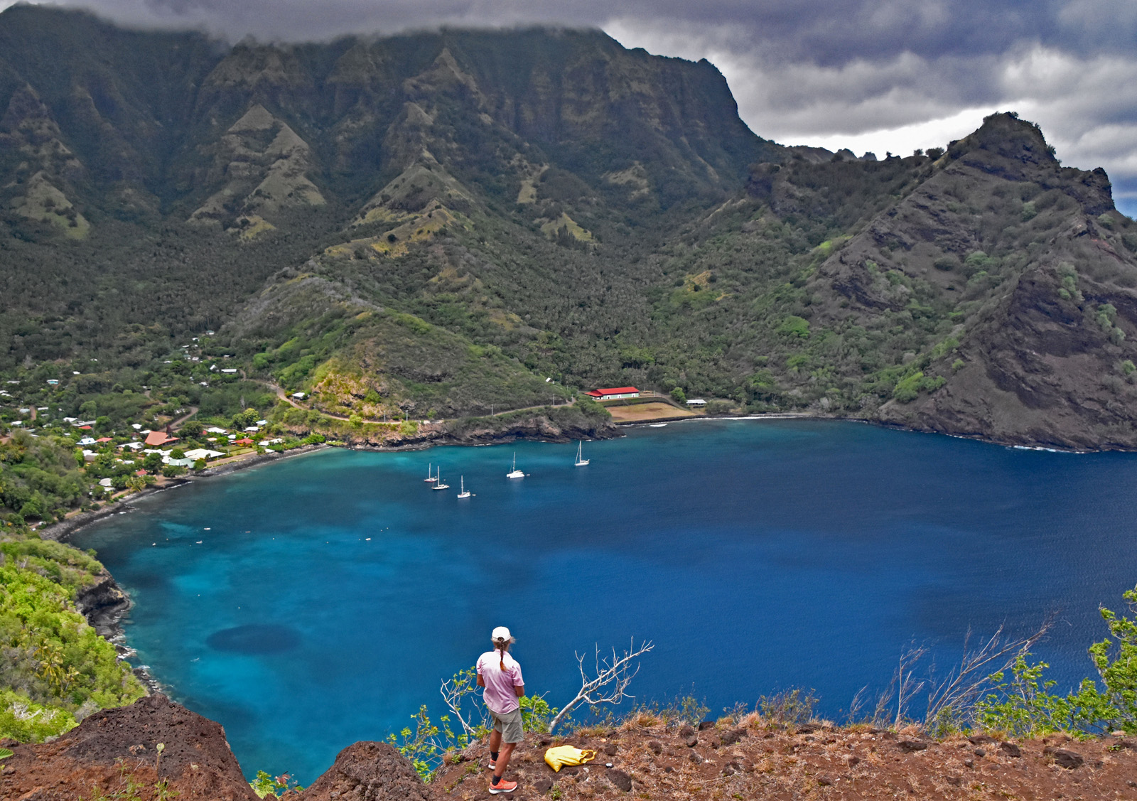Tahuata is has only 600 inhabitants, spread over 3 villages. The most attractive is Hapatoni, which has (by Marquesan standards) a sheltered anchorage and a good dinghy dock. As everywhere in these islands, the locals are friendly, and offer meals at home, which we profited from. |