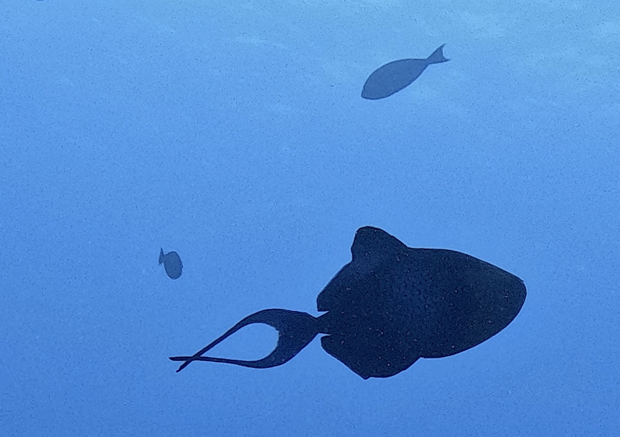 which we were perfectly located to watch. It was a total surprise, because we had not paid attention to the media. Attempts at photographing the eclipse from our moving boat were a flop, but we did have nice moonlight in the anchorage on subsequent nights. |