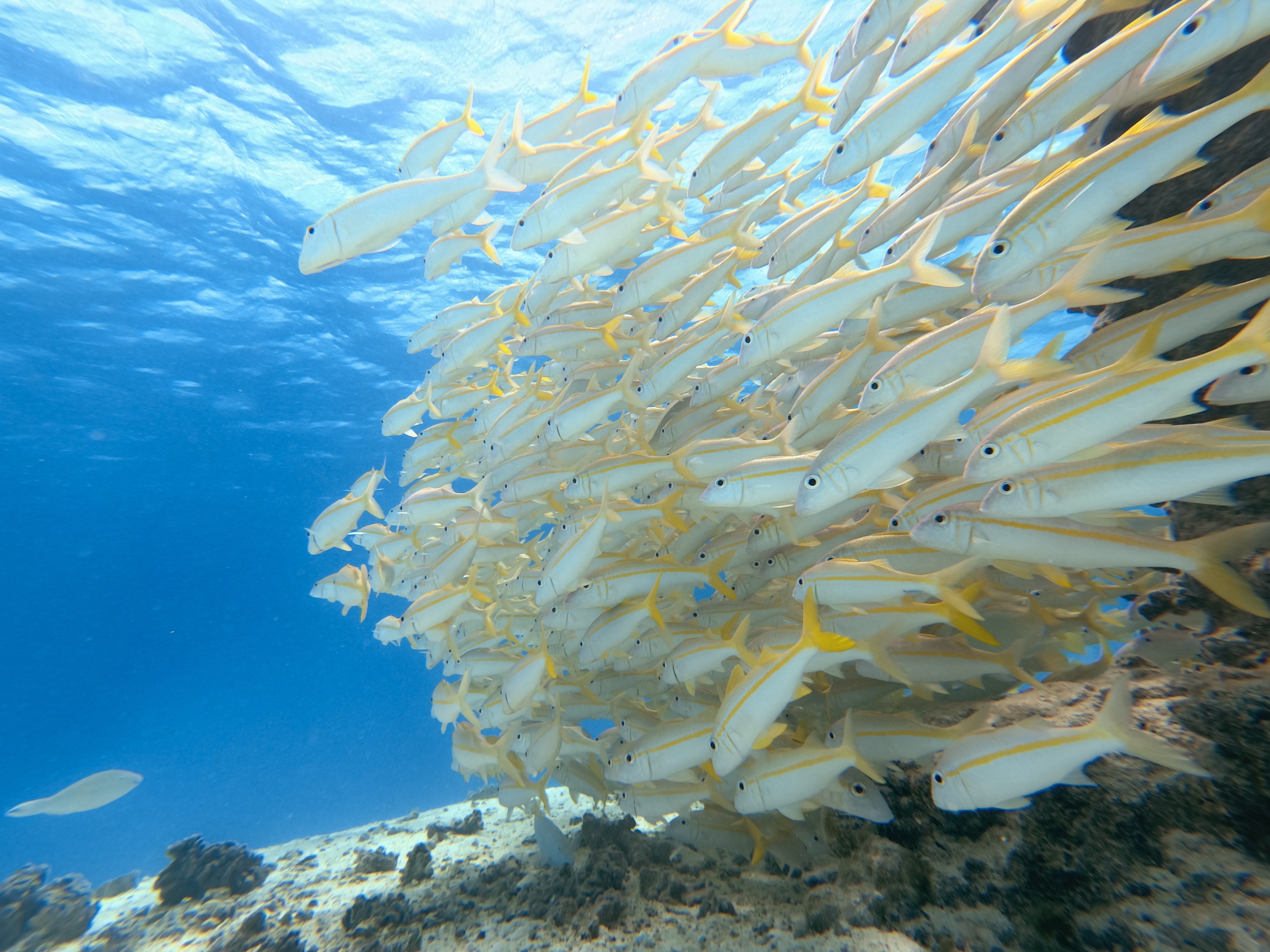 saw this shark followed the wee striped fish for several minutes.The fish seemed quite happy. |