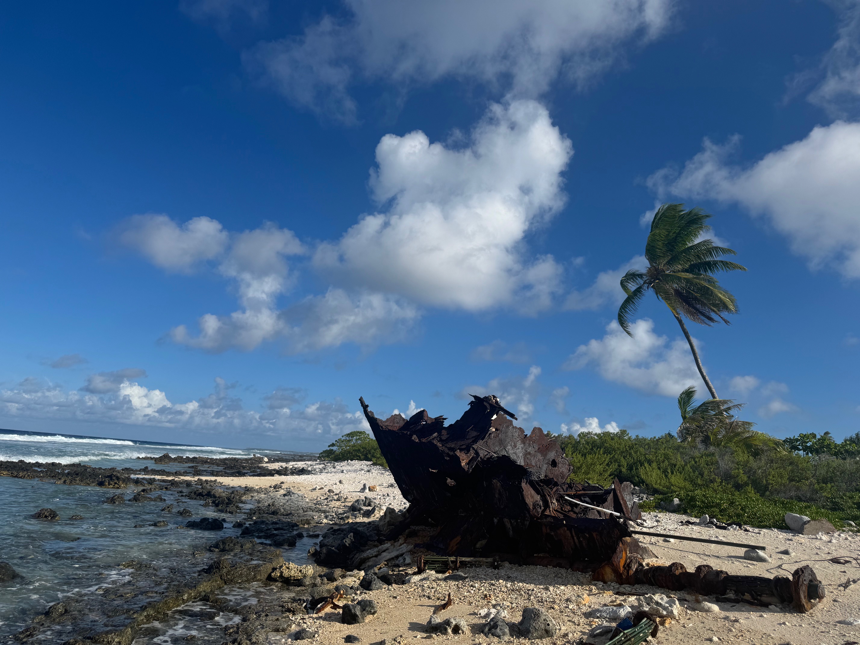 beaches inside the lagoon had only our own footsteps. On the ocean side, we found a reminder that navigation in the area is not without its hazards. |