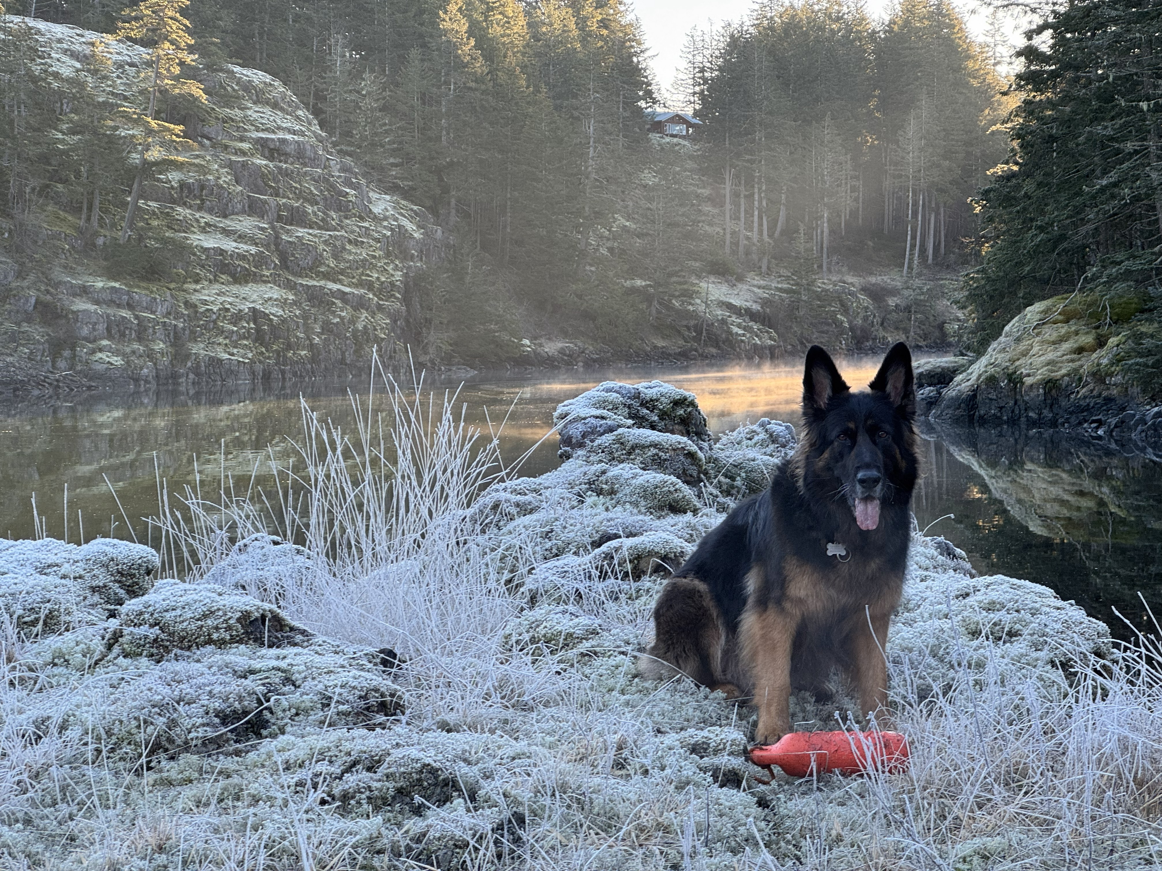 Our year started in with a visit from Michael and family, including of course their dog, Gracie, seen here on the trail behind our house. |